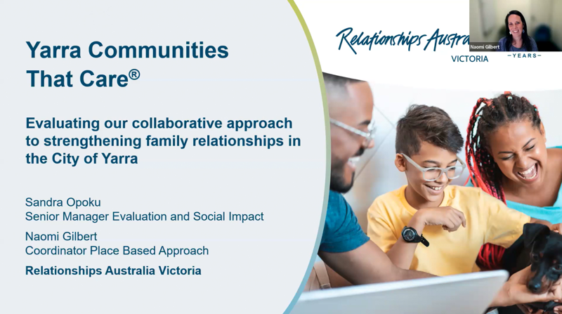 The webinar unpacked on the findings of our recent evaluation report on a local collaborative, place-based approach to strengthening family relationships in the City of Yarra.